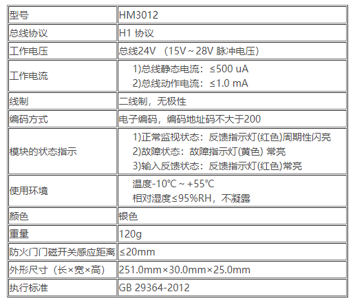 三、HM3012一體式常閉防火門監(jiān)控模塊技術(shù)參數(shù)